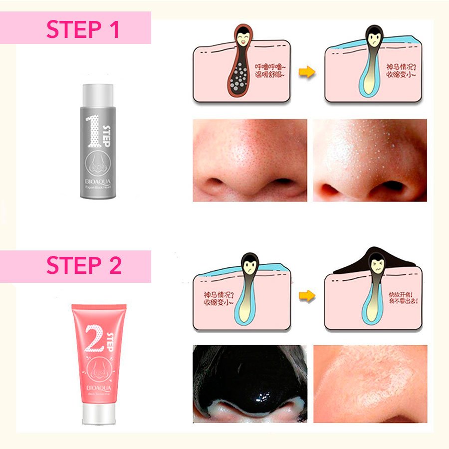 1. After cleaning your nose with clean water, put “Step 1” on your nose. Then after 15-20 minutes, you can take it off.