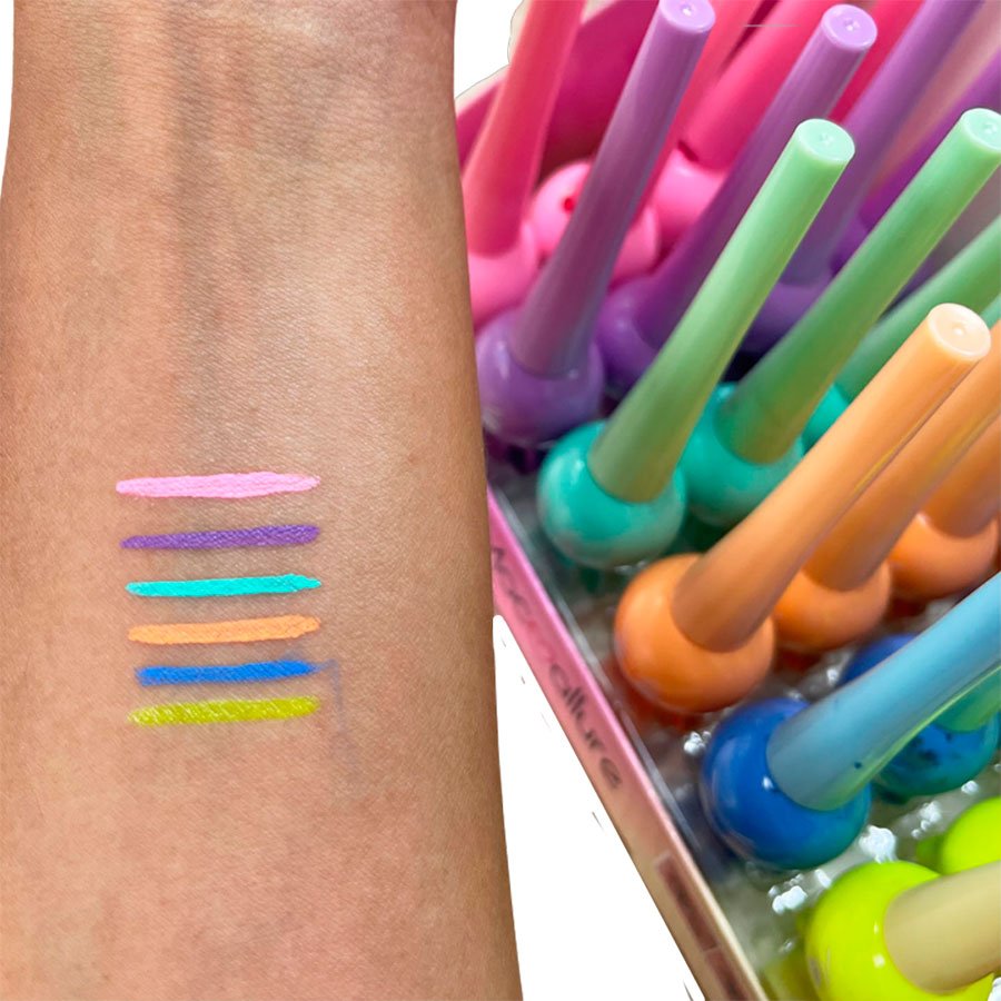 Pastel matte eyeliners. They are highly pigmented, soft to the touch and easy to apply, do not smudge and have a matte finish. Ideal for creating a novel eye look.